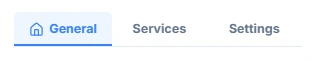 Directly below the search bar are three tabs that split the sidebar navigation into logical categories. Clicking a tab replaces the menu list below with only the links for that section.